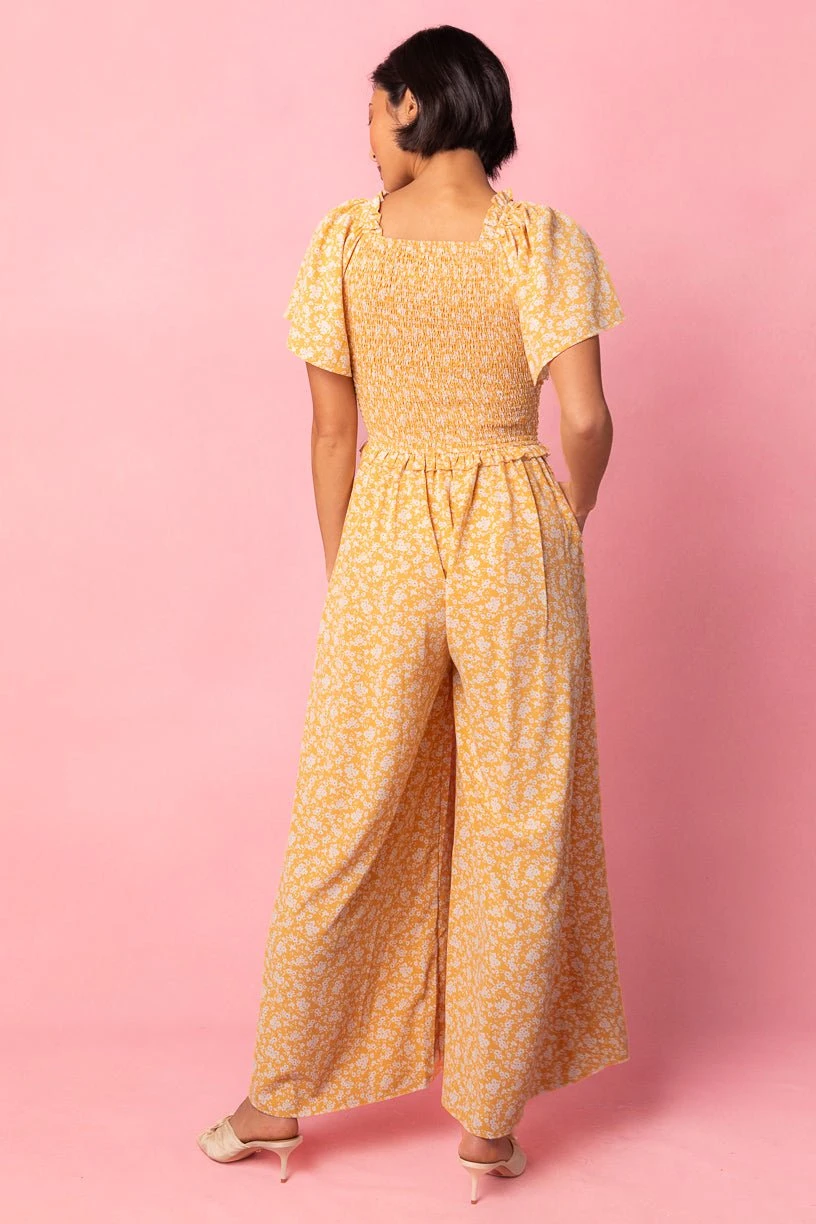 yellow wide leg jumpsuit