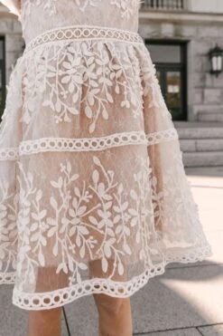 white lace with champagne lining midi dress