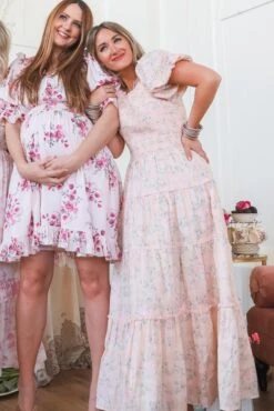 pink floral midi dress