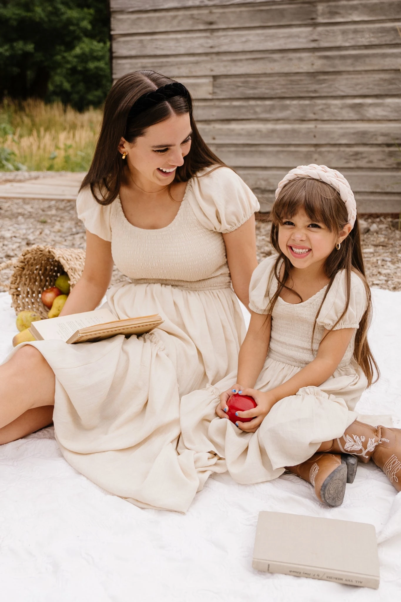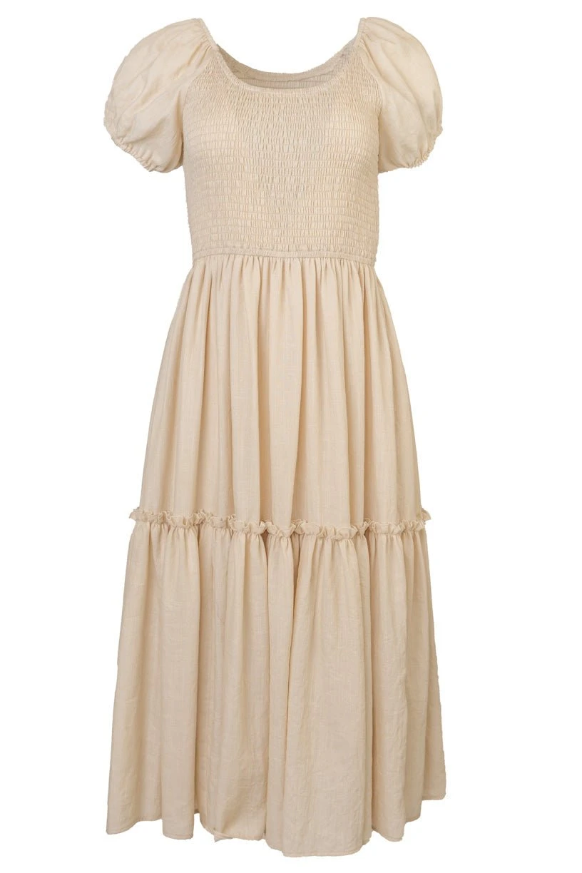 cream cotton smocked midi dress
